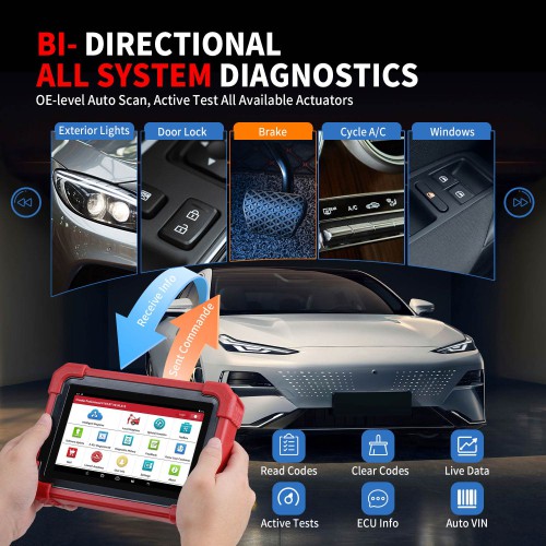 Bi-Directional Control capability and is capable of performing Active Tests to access vehicle-specific subsystems and component tests. The tester outputs commands to the ECU to drive the actuators in order to determine the integrity of the system or parts by reading the ECU data, or by monitoring the operation of the actuators .For example , LAUNCH CRP919X BT has the ability to actuate relays, injectors, coils, or perform system tests, etc. Also it will actuate solenoids valve and actuators for active testing to identify the error easily moreover. The bidirectional functions are quite extensive. even open an e.g.r. valve and seeing the difference in idle response and oxygen sensor voltage. Please note: Active tests are NOT universal for all vehicles, check compatibility with VIN number before purchase. Active tests vary depending on the manufacturer, year, and model, and only the available tests display in the menu.