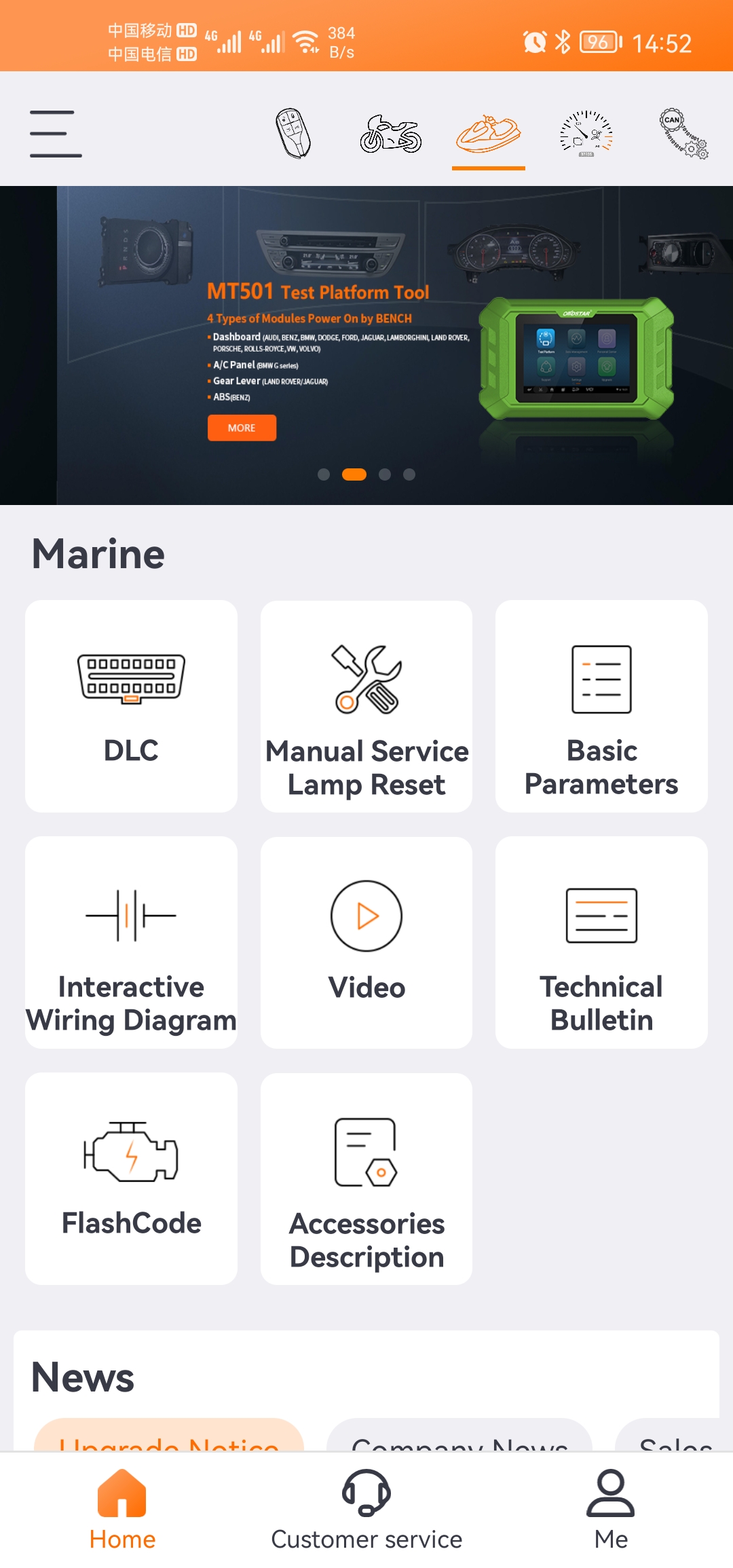 1. The OBDSTAR mobile APP integrates functions such as diag socket location, flash code query, technical bulletin, manual service function(service lamp reset), basic parameters, etc., working with MarineMaster to make marine diagnosis more accurately and efficiently (some functions are only available for MarineMaster users to check for free);