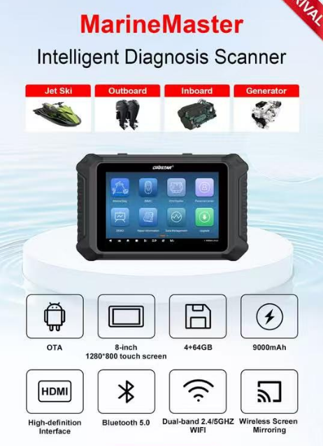 MarineMaster is OBDSTAR's new generation device for marine (jet ski/ outboard/ inboard/ generator) intelligent diagnosis.